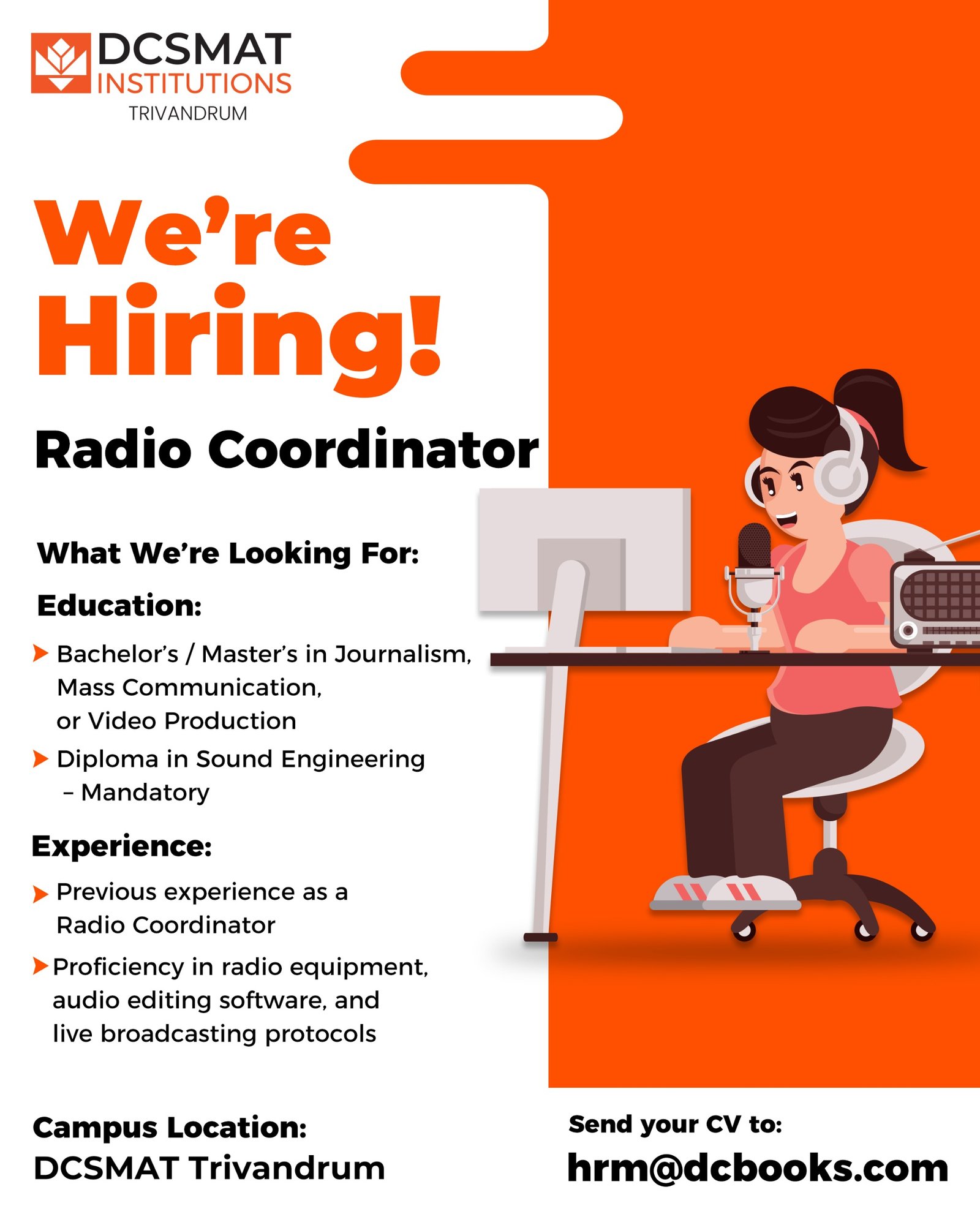 We are hiring Radio Coordinator for DCSMAT, Trivandrum