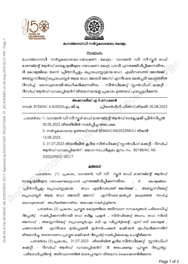 MGU Research centre approval
