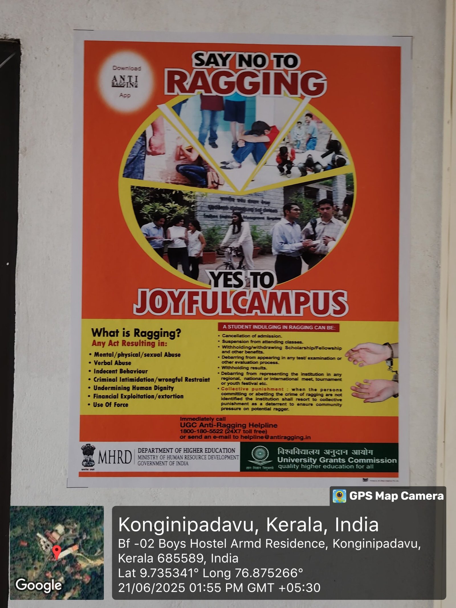 Anti Ragging Posters need to be pasted in the strategic locations like hostels, canteen, activity center, class rooms and common areas.